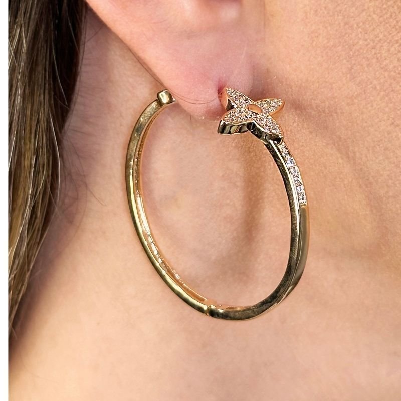 - Realce sua beleza com o nosso Brinco Argola Dourada, uma joia que traz a delicadeza e o brilho de um design inspirado na natureza e na alta joalheria. Perfeito para quem busca um acessório que une elegância e um toque de sofisticação.