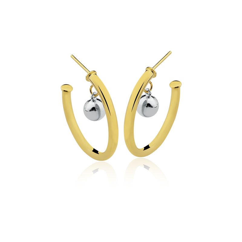 Modernidade e elegância em uma peça. Este brinco de argola dourada (3.00cm de comprimento x 3.50cm de largura) complementa qualquer look com o charme da esfera de ródio. Perfeito para o dia a dia ou ocasiões especiais.