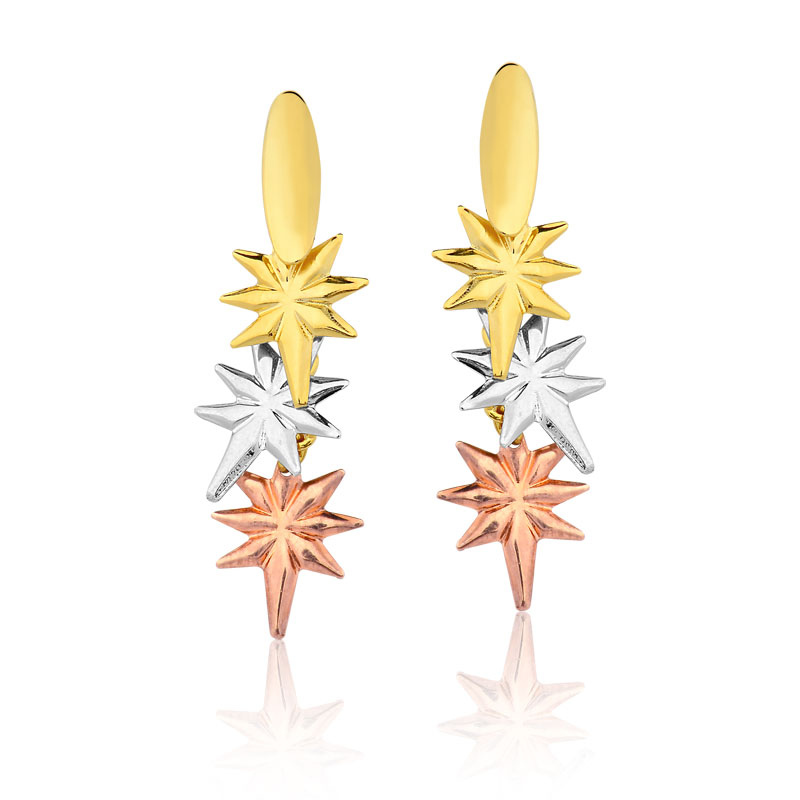 Design: Três estrelas de oito pontas em degradê metálico