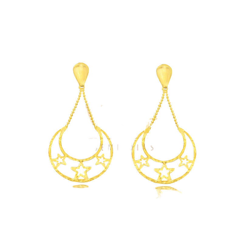 Deixe-se levar pela magia da noite com os Brincos Meia-Lua e Estrelas Dourados. Uma peça delicada e cheia de simbolismo, que traz o encanto do céu para mais perto de você. O pingente em formato de meia-lua vazada, adornado por pequenas estrelas cintilantes, cria um visual lúdico e sofisticado.