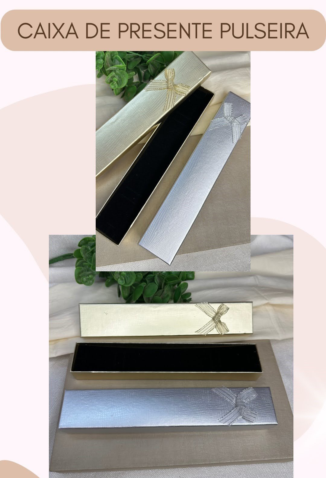 Eleve a experiência de presentear com a nossa elegante Caixa de Presente, ideal para pulseiras, colares finos, ou joias alongadas. Com dimensões de 21 cm de comprimento, 4 cm de largura e 2,3 cm de altura, ela foi pensada para acomodar e valorizar suas peças com sofisticação.