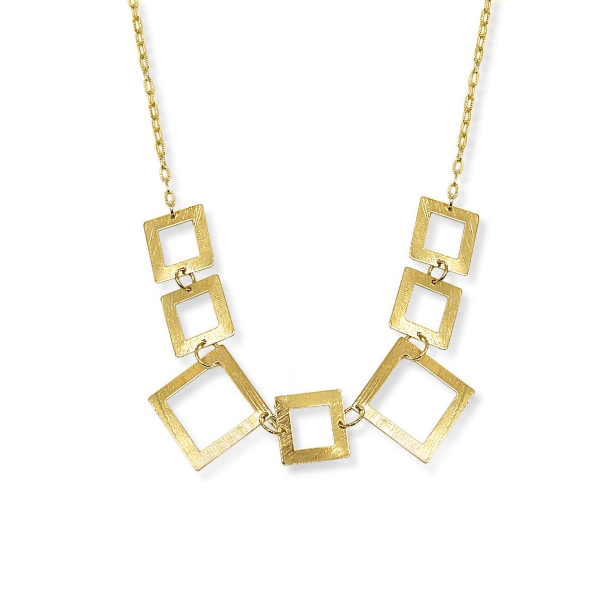 Adicione um toque contemporâneo ao seu visual com este colar folheado a ouro, featuring elos quadrados de tamanhos variados e acabamento texturizado. Comprimento de 47 cm.