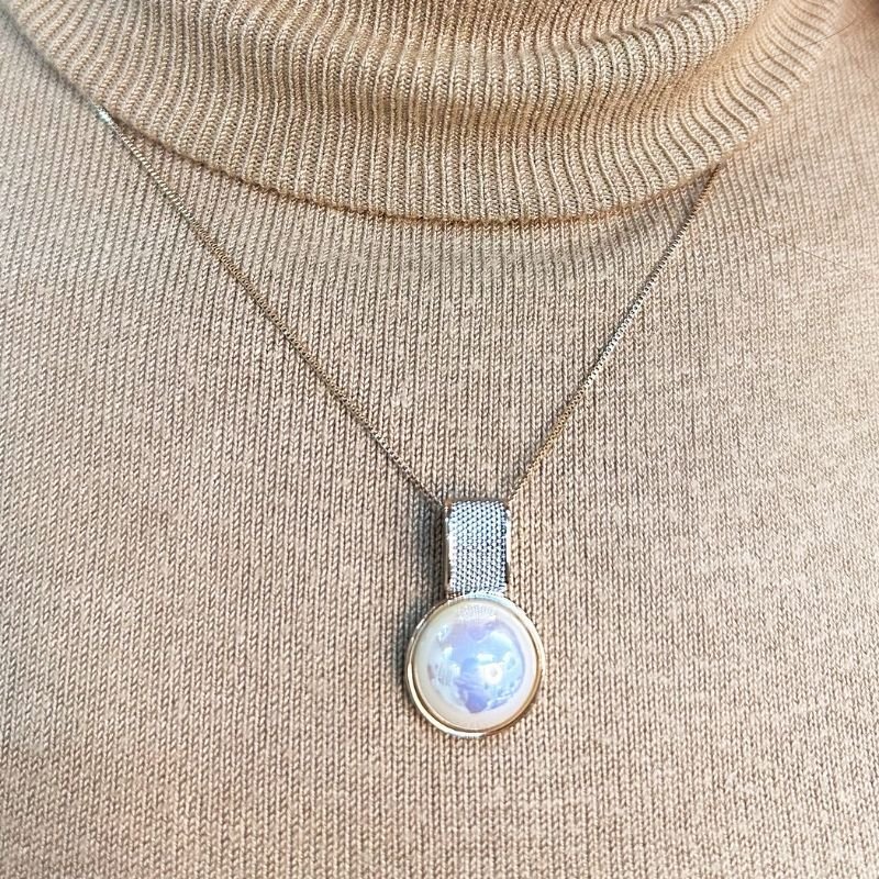 - O colar Pérola shell com Ródio Branco é uma peça sofisticada que combina elegância e estilo atemporal.