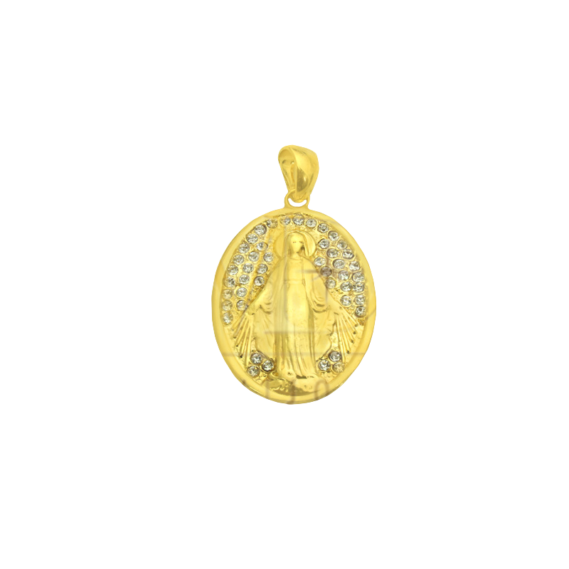 Leve a proteção e as bênçãos de Nossa Senhora das Graças sempre com você. Esta linda medalha oval folheada a ouro é cravejada com zircônias cintilantes ao redor, combinando fé e elegância.