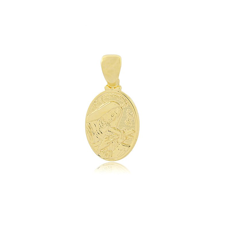 Leve a força e a fé de Santa Rita de Cássia sempre com você. Esta clássica medalha oval folheada a ouro simboliza a intercessão nas causas impossíveis e a devoção, perfeita para o uso diário.