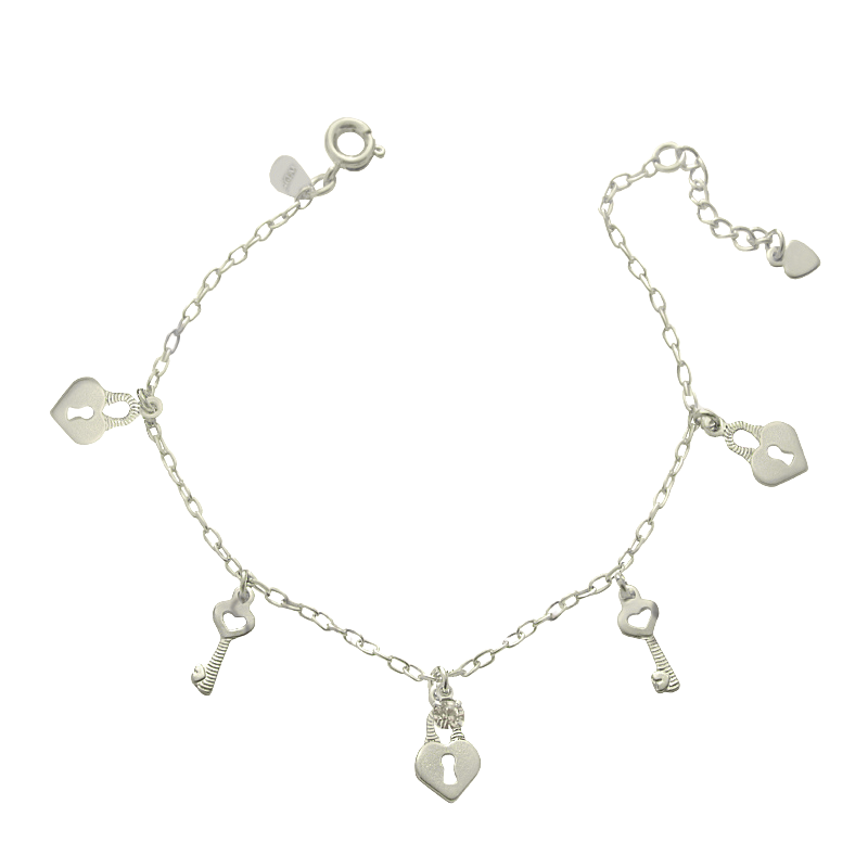 Pingentes: 3 corações com fechadura + 2 chaves decorativas