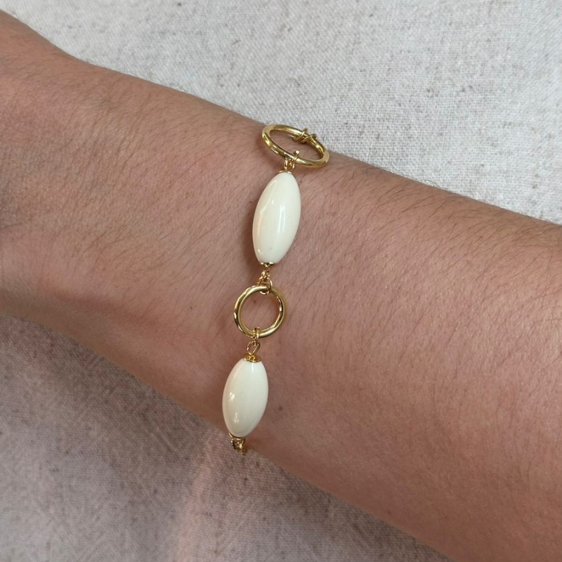 Contas ovais em resina marfim