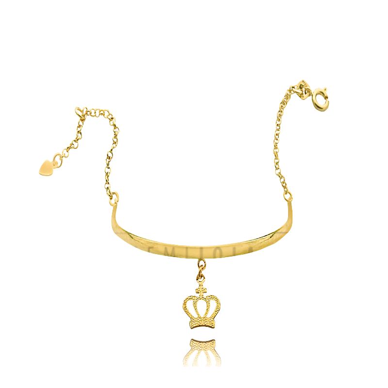 Linda pulseira infantil em semijoia banhada a ouro, com design delicado e sofisticado. Possui uma barra lisa e um pingente em formato de coroa, simbolizando realeza e charme para os pequenos.